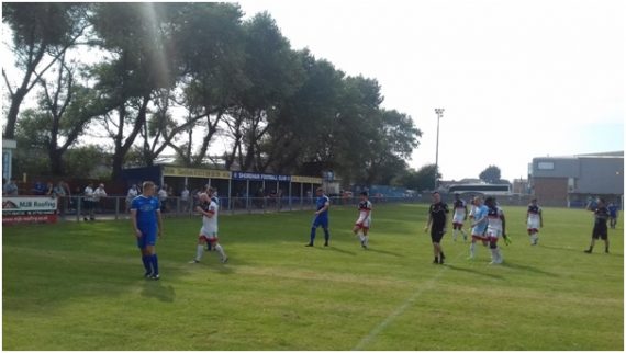 On a very hot afternoon Cray had to pace themselves for the 90 minutes ahead and started off in confident mood. In the 4th minute, down the left, Freddie Parker laid the ball back to Karl Dent whose first time shot was well saved by home keeper James Broadbent, pushing the ball behind for a corner. This was followed by a fine left wing cross from Bradley Stevenson which no one could get on the end of.