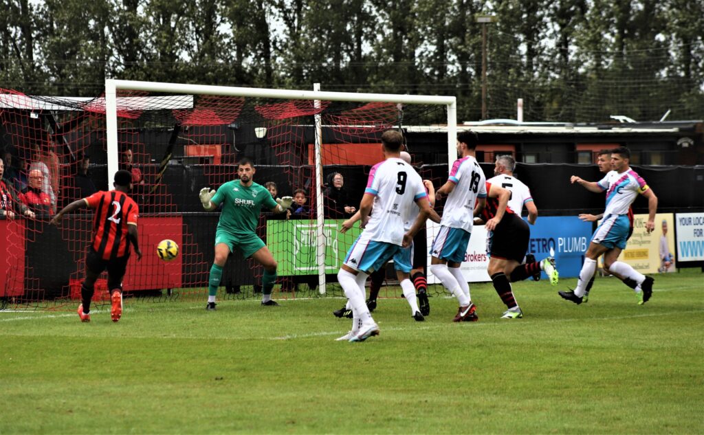 Sittingbourne continued to have the better half chances but van der Vliet wasn’t troubled. Donvieve Jones was twice inches away from converting dangerous crosses before the ball fell to Carvalho at the other end, but with the goal at his mercy, he blazed high and wide.