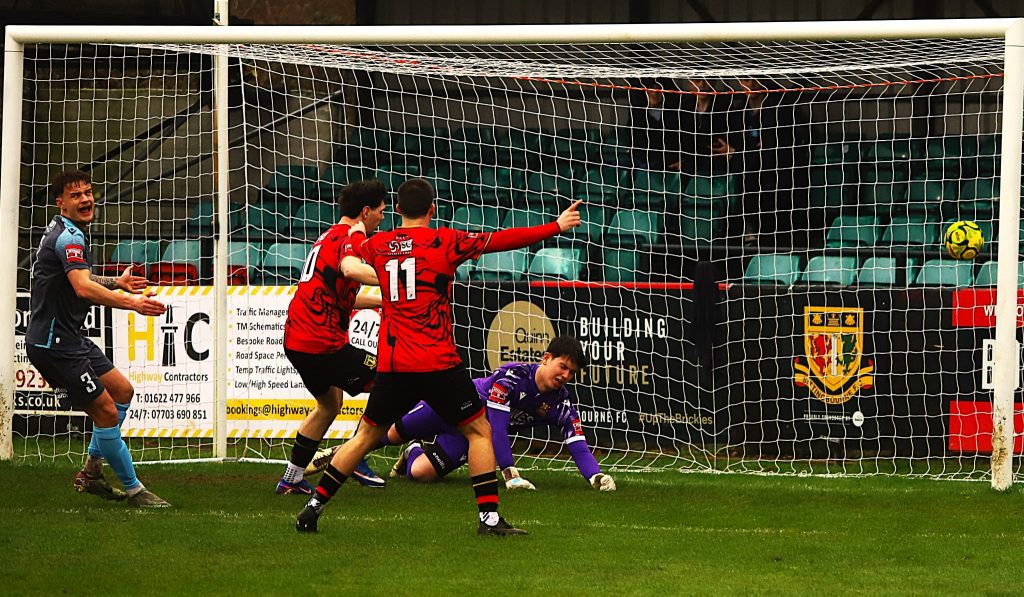 Sittingbourne looked to press home their lead – sub-Erin Kinali crashed a shot a yard wide from May’s touch before a super dummy by the industrious Darren Foxley (from Graham’s pull back) just didn’t roll for the home side.