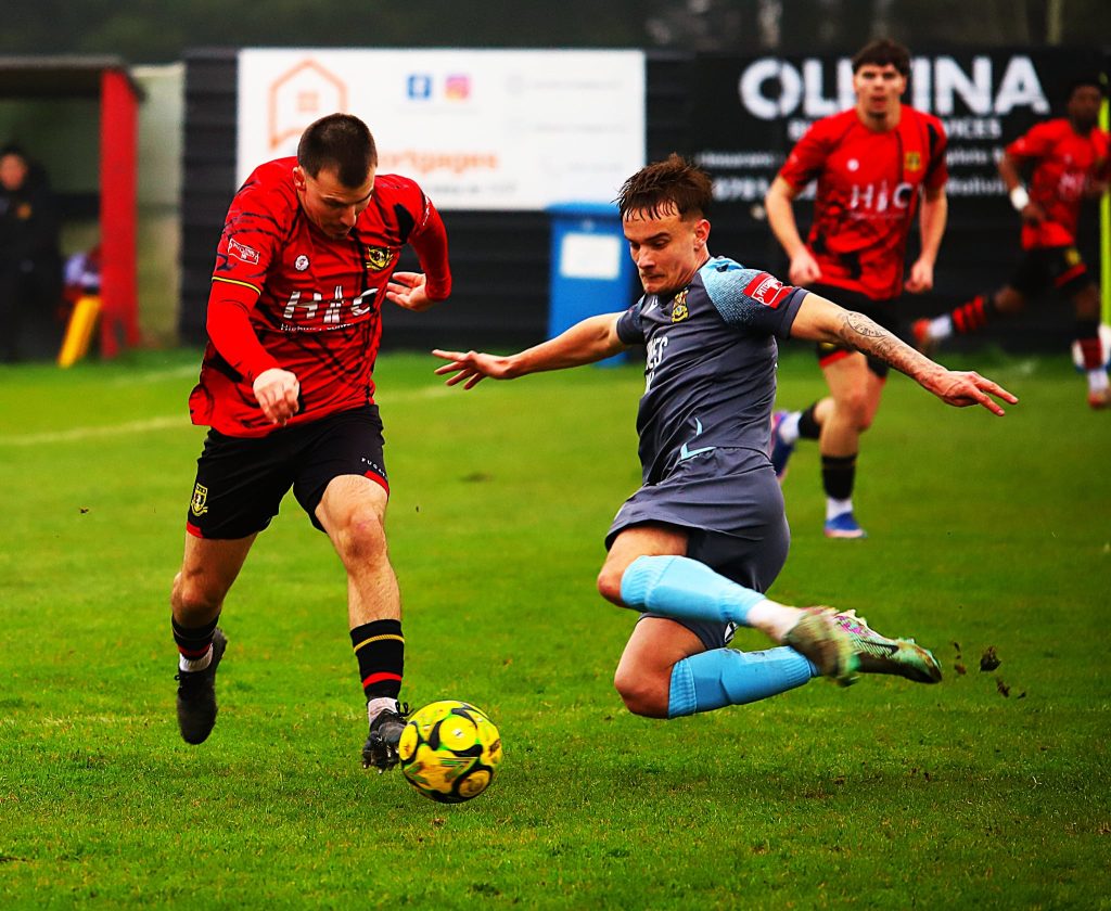 The leaders huffed and puffed but didn’t look like breaking through and the best chance of the first half was a shot from Hayden Velvick which Hoyte did well to block.