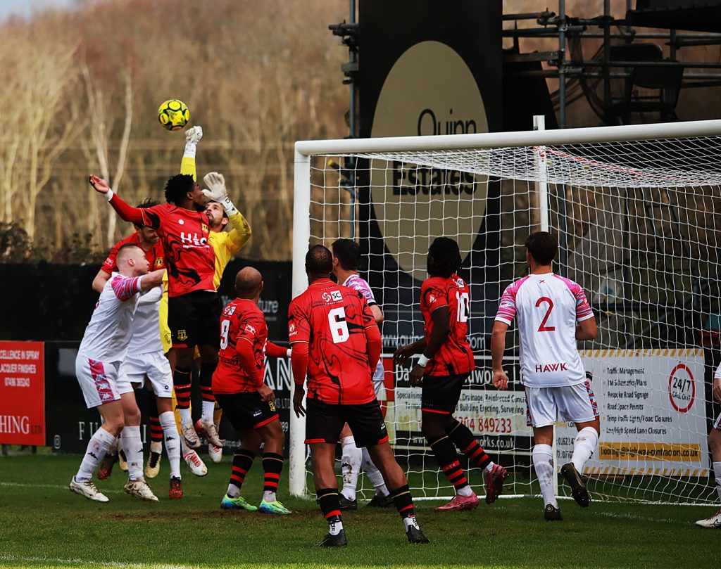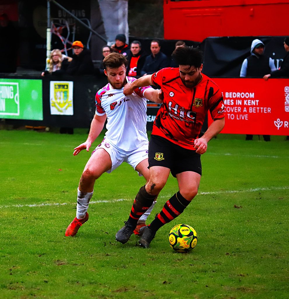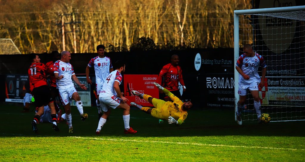 Boachie fired over; substitute Harvey Smith’s header from a Richie Hamill centre didn’t miss by much; a Hamill corner caused chaos in the Jersey box late in as they had all eleven defenders in their own box late, Smith’s late touch to a ball in form the left was well held by Van Der Vliet – despite their best efforts Sittingbourne just couldn’t force what would have been a deserved winner.