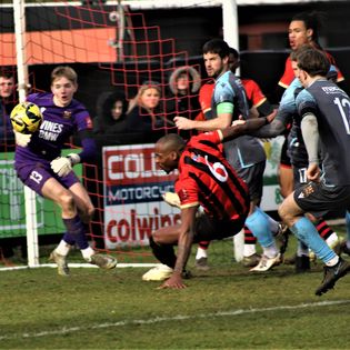 With the visitors “parking the bus”, the home side struggled to create clear chances with Sergio Uyi inches away from touching home a long throw in a disappointing first half that had the visitors stretching the letter of the law to the limit as they literally rolled round a large part of the Jarmans Solicitors Stadium.