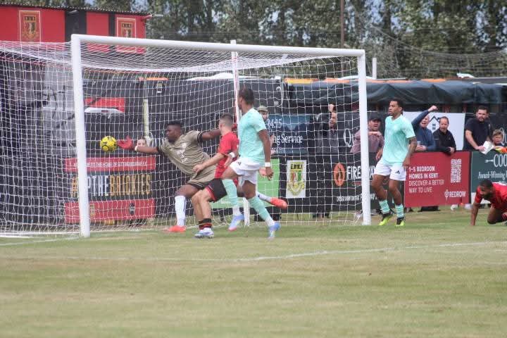 Sittingbourne made two changes at the break and almost immediately – one of the subs – Brown nipped in and cushioned a header past Amadou Tangara and in off the keepers right post. Darren Foxley, the other sub, then whipped a free kick across the face of goal as any touch would have doubled the Brickies lead.