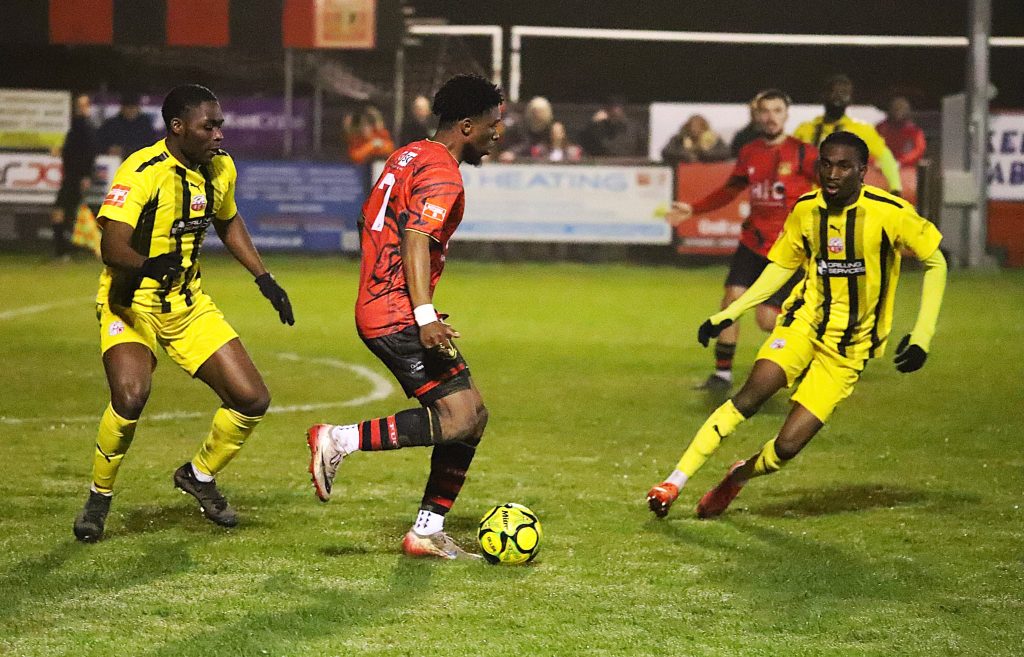 Indeed, it was the visitors who enjoyed the best chances early on – quite how Kieron Agbebi didn’t hit the target after great work from Dsean Spencer on he will know and Jack Steventon’s timely block denied Eitel Moumi-Goueth as the Sheppey man thought he’d scored.
