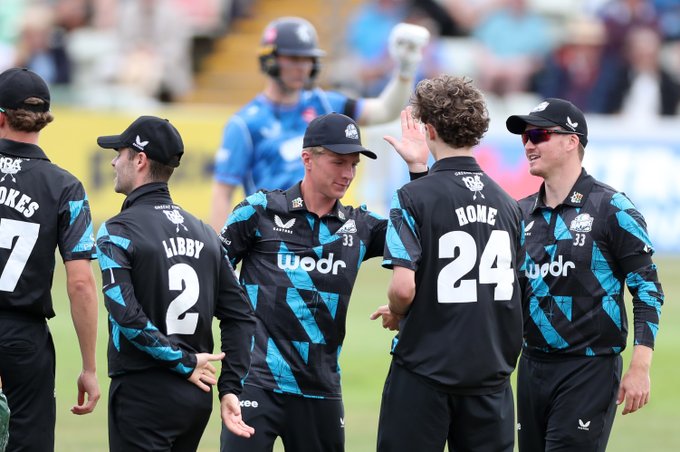 Jack Leaning and Joey Evison attempted to rebuild the innings but after adding 41 the latter cut Home, who had taken six wickets against Derbyshire on Friday, straight to Ethan Brookes at backward point.