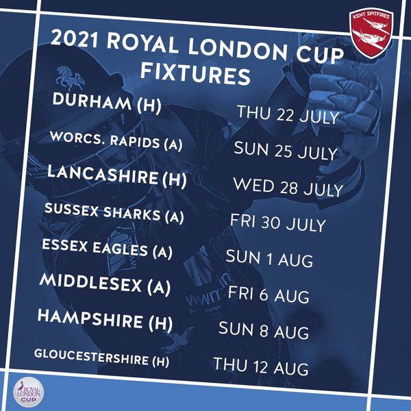The Royal London Cup also returns for 2021 after a one-year hiatus, and the Spitfires will jump head-first into 50-over competition four days after the end of the Vitality Blast group stage to take on Durham.