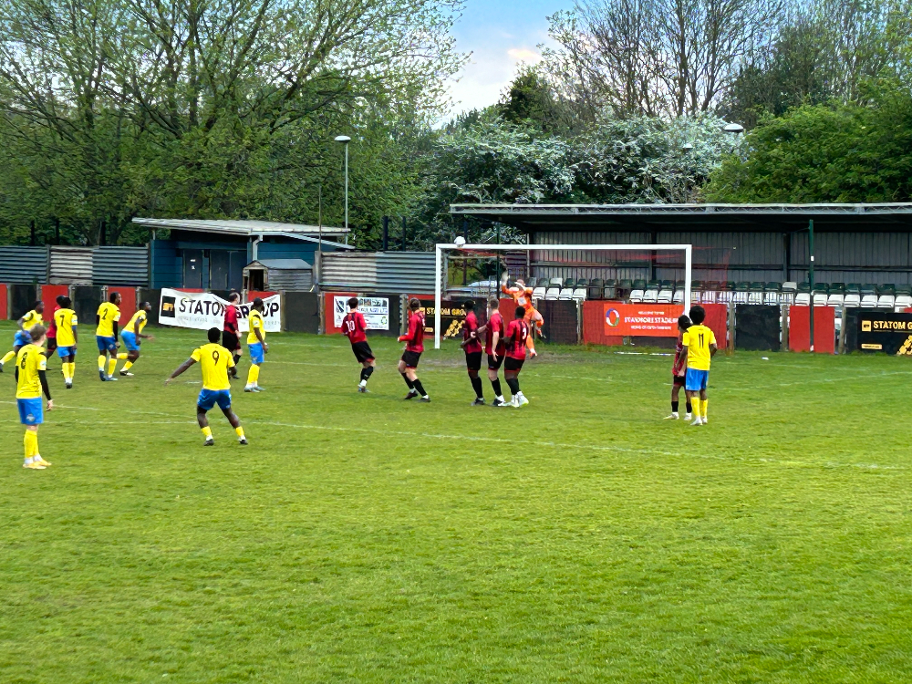 Centre-back Paul Lee was sent forward as an additional central striker by Thamesmead and his header from Santana’s cross was deflected wide before Ben Lockett delivered the corner and Tom Borders nodded wide of the near post.