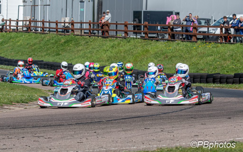 Caitlin May was having a very competitive day as she lined up her Blueberry Motorsport kart up on the inside of row 2 from her GMS Motorsport rival Mollie Griffiths. Rhys Rutland and Kyle Dickens were next up on row 3 from Finlay Underwood and Felix Dymant on row 4. Presley Walker and James Cannon completed the top 10 on row 5.