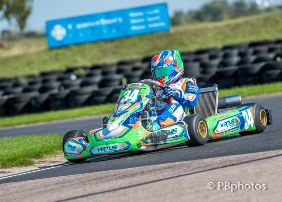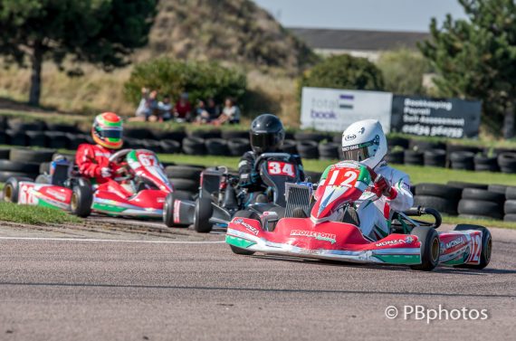 Project One’s Declan Lee had the perfect day at Bayford Meadows on Sunday, taking wins in both Pre Finals and then a comfortable victory in the Grand Final, although he missed out on the fastest lap to cap it off. Lee pulled away from the start and then controlled the race pace over the next 14 laps. Behind Thomas Lawson held off a spirited challenge from Lee’s teammate Jack Steadman, who took the fastest lap during his challenge. There was never much between the pair who finished 1.5 seconds behind the winner. Benjamin Boras was 4th from Jake Kolosowski in 5th .Dillon Stepney was 6th from a troubled karting returnee Max Goodwin in 7th. Scott Sumpton enjoyed mixing it with the Rotax runners as the only JX30 entry in his Virtus run kart.