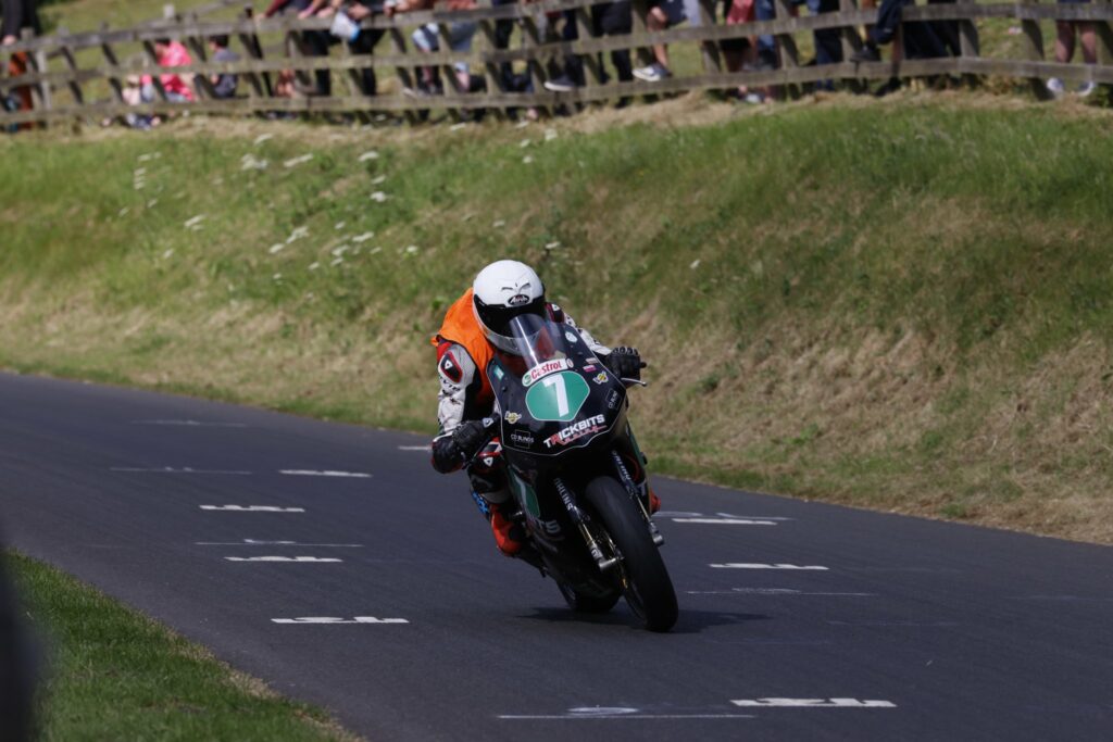 Cock o’ the north feature race – 11th on the grid due to fastest laptime Saturday. A terrible start with the bike having a small issue off the line. I dropped to four from the back. Set about fighting back through and made several passes but unfortunately coming from so far back there was only so much I could do. I crossed the line eighth which I was actually a bit disappointed with but posted the fifth fastest laptime.