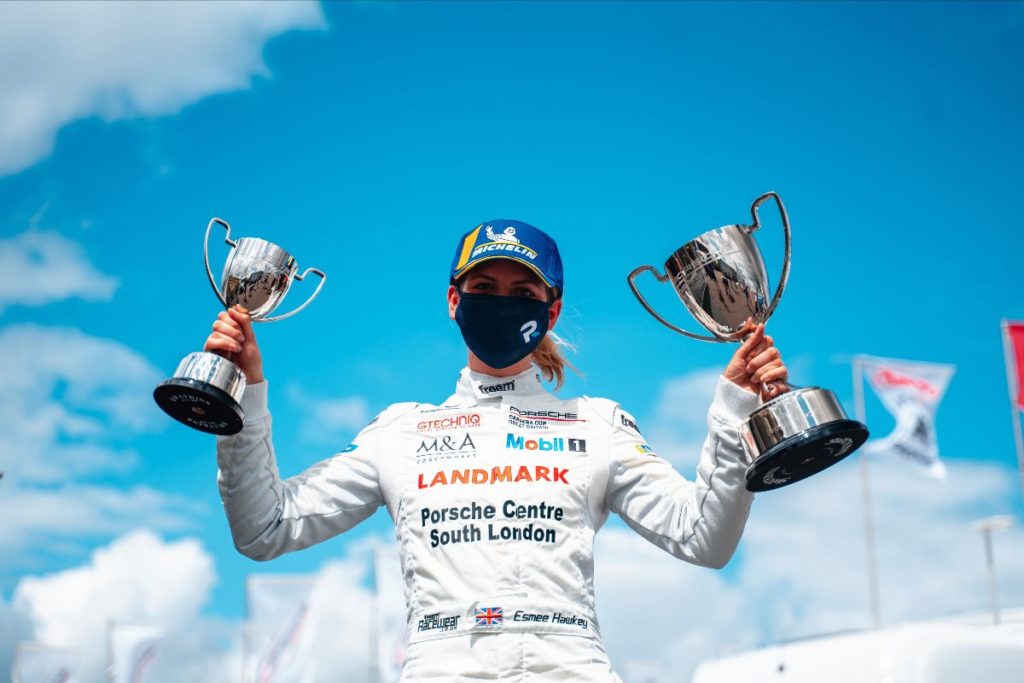 Esmee Hawkey couldn’t have asked for a better start to her Porsche Carrera Cup GB campaign as she not took two Pro-Am victories to lead the class standings, and a superb overall podium finish as well.