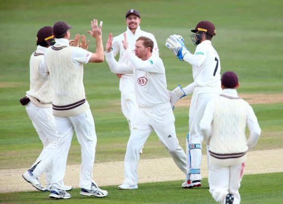 Opening batsman Sean Dickson scored his ninth first-class century to help his side avoid the follow-on as Kent conceded a 145-run first innings lead after being dismissed for 294 in their Specsavers County Championship match with Surrey in Beckenham.