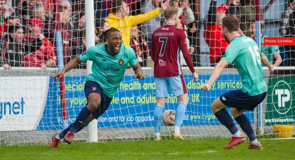 With six minutes of time signalled after a lengthy treatment period for Bycroft, Sterling’s reverse pass found N’Guessan who deposited a delightful effort to the opposite post and although the goalkeeper kept that one out too, he was powerless as Poleon came steaming in to bundle the ball over at the foot of the woodwork to bring the roars of delight pouring out of the Fleet fans behind the goal.