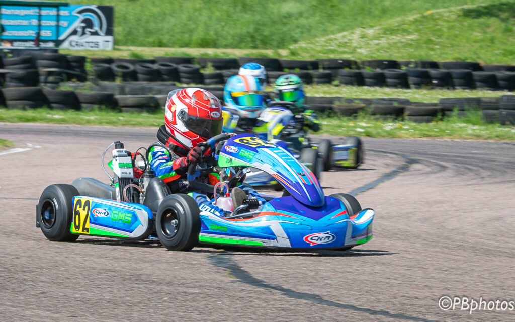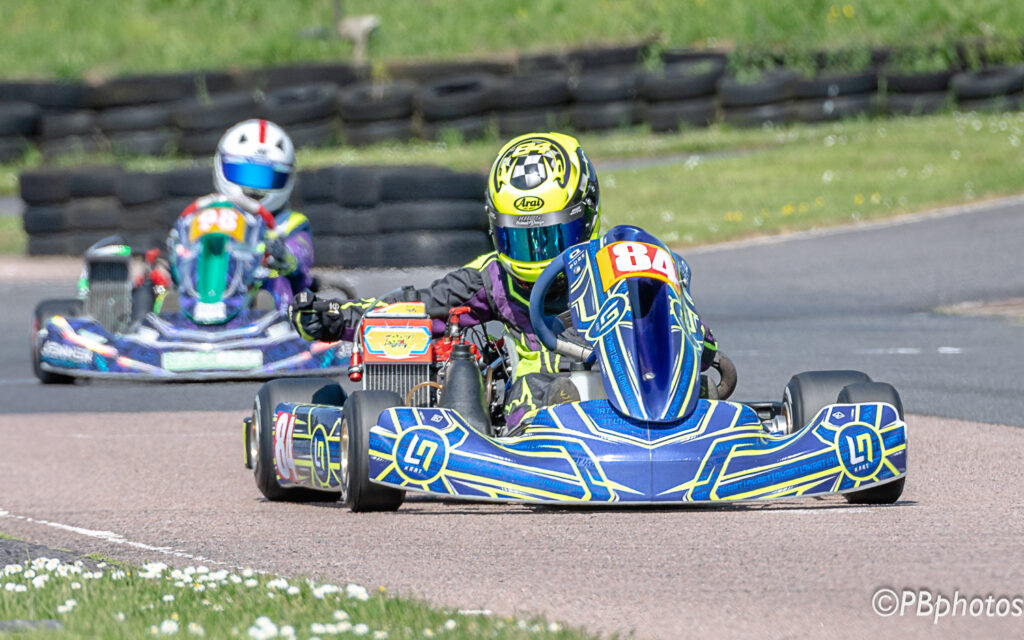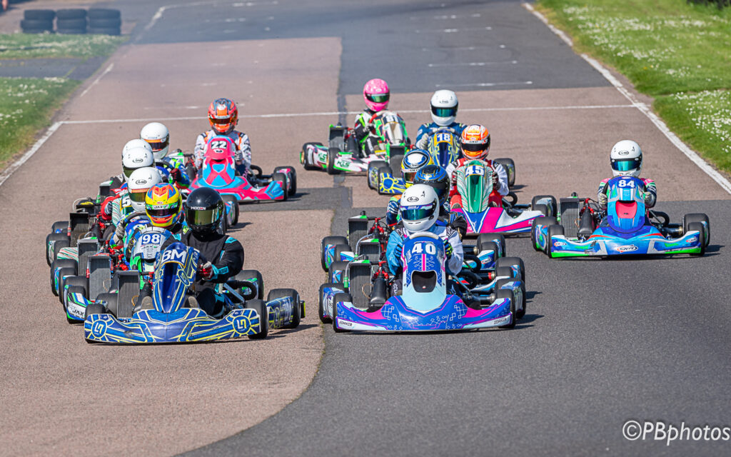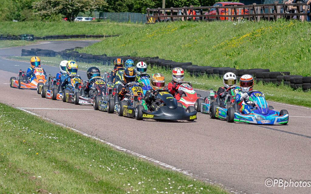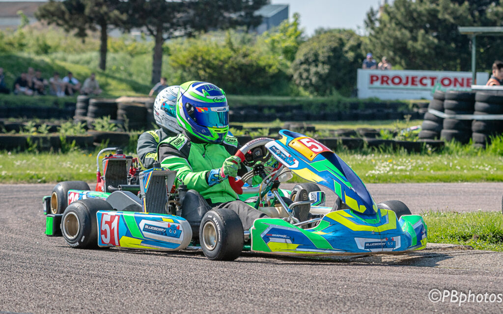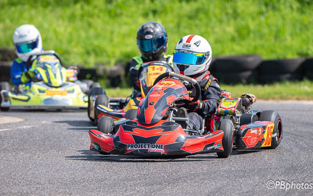 The largest entry of the day was for the Junior Rookie classes, with 20 karts entered. Unfortunately for Jasmine Keepax, a crash in the Heat held during the morning involving Leon Knight, curtailed her day with a wrist injury. The Heat win went to George Cole who had also topped the morning qualifying session. Cole then followed that win up to take pole position in the Final, with another in the Pre Final, as Ayda Sexton finished just 0.2s behind to line up on the front row.