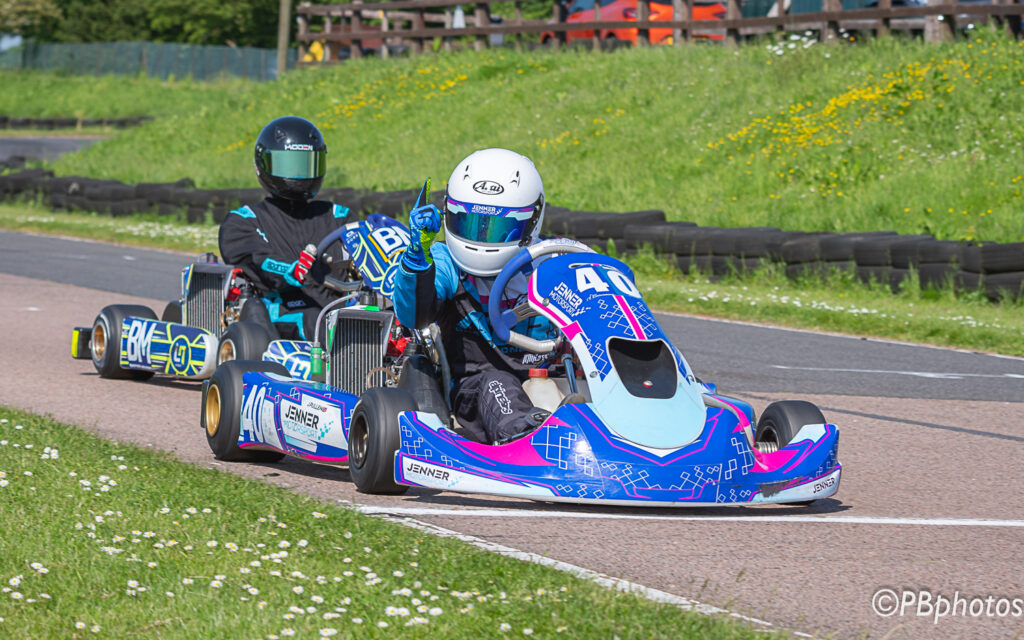 After being pipped to the post last month, Jack Cope was keen to return to winning ways on Sunday, he was boosted with his endeavor by running in a new kart with bright Jack ‘Dash’ Cope graphics. This obviously had the right effect as he won the Heat – Pre Final and main Final, only being headed in the morning qualifying by circuit returnee Ricky Junior Mackintosh.