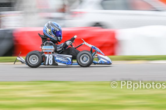 Josh Pullen and James Black tried all they could to stay with the GMS kart of Stephenson and kept him within touching distance, just falling short of a challenge for the lead. Black’s JB Motorsport CompKart initially took up the challenge running 2nd in the final until Pullen’s Clarke kart moved ahead at the end of the 4th lap . Behind Lewie Weaver drove well to run and eventually finish 4th, Oliver Bullion was initially h5th until he had an incident with class debutant Katherine White, which ended Bullion’s race and severely delayed White. Jack Richards ran and took a comfortable 5th .