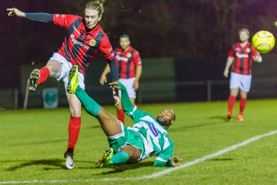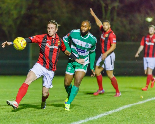 Bryan fired a freekick into the wall as Heybridge started to use the conditions to their advantage, and substitutes Lewis Godbold and Lamar Reynolds were wasteful when in front of goal. But in the end, the effort of the ten men in green wasn’t enough to break their current run.