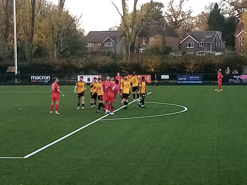 Brickies boss Ryan Maxwell called for a response from his side after Wednesday’s defeat at Sevenoaks and for eighty minutes the visitors responded and going into the final ten minutes lead courtesy of Jack Steventon’s thumping header in first half stoppage time.