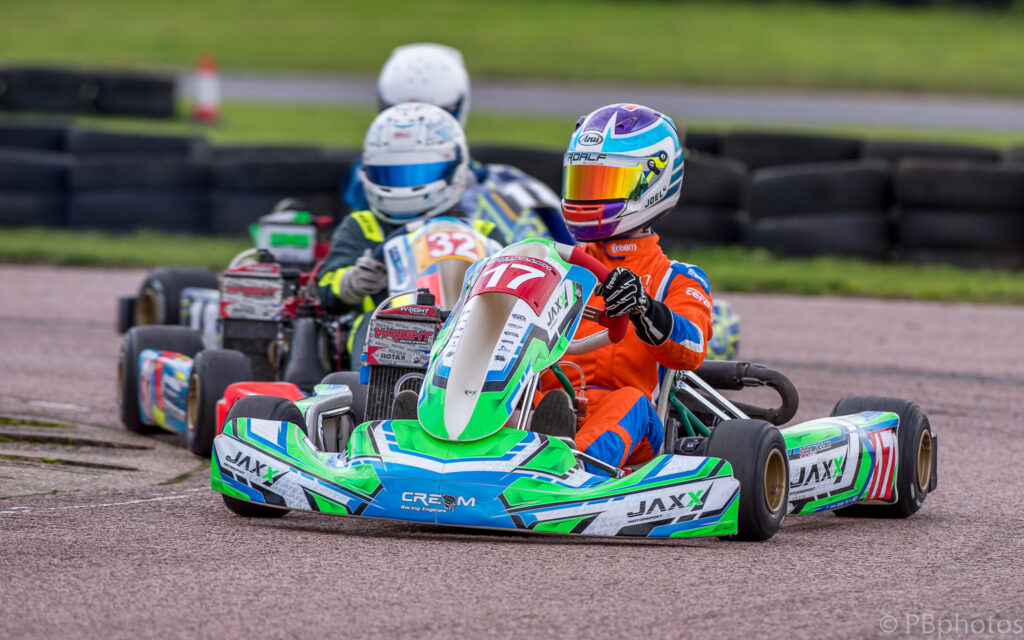 In the Rotax Cadet class Harrison Page continued his domination with a 2.55s win in the Final, although his domination was briefly broken when his CHDD teammate Daniel Butcher beat him the to the Heat win. Butcher took 2nd in the Final after a good dice with Matthew Lilley who finished just 0.5s behind in 3rd place. Arthur Pharaoh finished 4th just ahead of Rory Pizzey in 5th. Dimitar Uzinov had been in the mix for the fight for 3rd until a spin dropped him back to 6th.