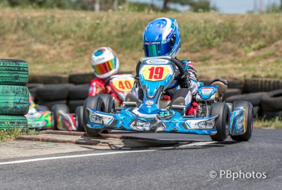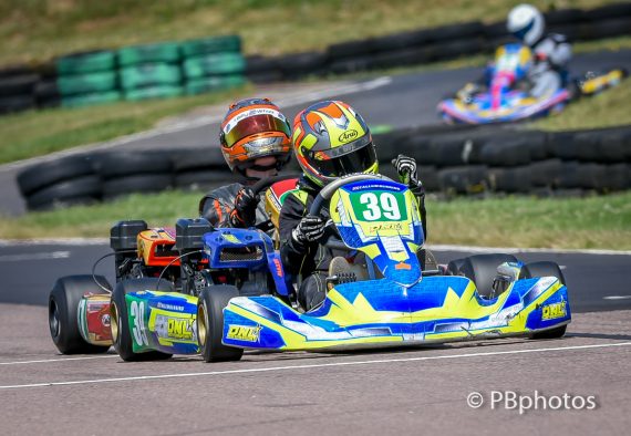As the trio approached the chicane at the end of the lap, we all held our breath and wondered if Greenall would attempt to try a move, sure enough he did, but Tolley reacted covering the only line through the tight right hand corner, contact was inevitable with Tolley’s adversary unfortunately spearing off into the outside tyre wall. Ripley came through the melee to finish on the bumper of Ambition kart of Tolley as they crossed the finish line. Project One’s Oscar Tueten put in his best result with a fine third place after starting 2nd , finishing just ahead of Virtus driver Jack Clements in 4th. Greenall recovered to a disappointing 5th and although he did set the fastest lap, wasn’t happy with Tolley in parc ferme. Louis Horsley finished 6th after a race long battle with James Higgins in 7th. Completing the top 10 were Declan Russell, Ronnie Mansfield and Ryan Willis.