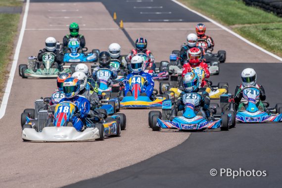 Having set blistering times in testing on Saturday, Jack Wall set the fastest time in Senior Max qualifying; it was very close though with his teammate Troy Beswick fractionally slower and Bobby Grove next up in third. Eleven drivers were within a second of each other in what has become a super competitive class at the Swale circuit. Chaos ensued at the first corner of the first Pre final with a number of drivers taking to the grass banking facing the wrong way! This gave Wall a breather over his nearest rivals as he went on to take the win. The second Pre final saw Wall again lead, although this only lasted to lap 5 as Grove had scythed his way through from 4th on the grid to take a lead that he would not lose.