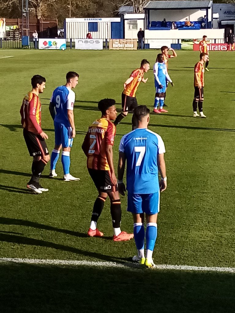 In the build up to the game, McKimm did admit to KSN a concern that his side hadn’t played since the last round against Taunton Town two weeks before and sadly his concerns were proved correct as the League Two side came out of the blocks quickly pinning the home side back in the opening minutes.