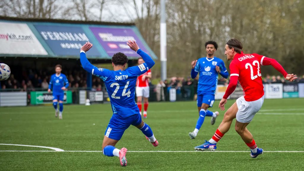Tonbridge did find a goal late in the game. There were three minutes left when Bunmi Babajide and Francis Mampolo combined for Leahy to fire home but it wasn’t enough for the Angels who had only three minutes of added time to find an equaliser. But Fleet, who had defended well when needed to, kept the ball upfield to secure another important victory and might even have added a third when Chapman slid in after Finlay Barnes dropped a ball into his path but that was saved.