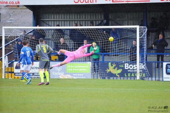 This spurred the Angels on to take a more assertive role and on 23 minutes Bantick forced a terrific save out of Hudnott as he cut in from the right. Just a minute later the same player this time drifting out to the left unleashed a shot which this time Hudnott couldn’t deal with and Tonbridge found themselves in front.