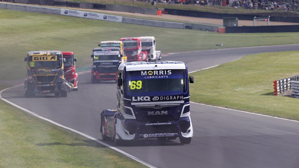Collett was hounded by the chasing pack throughout the contest, but negotiated slower lapped traffic ably to just keep his yellow MAN truck at the head of the field. He passed the chequered flag just over three tenths ahead of Michael Oliver, who kept his rival honest right until the line.