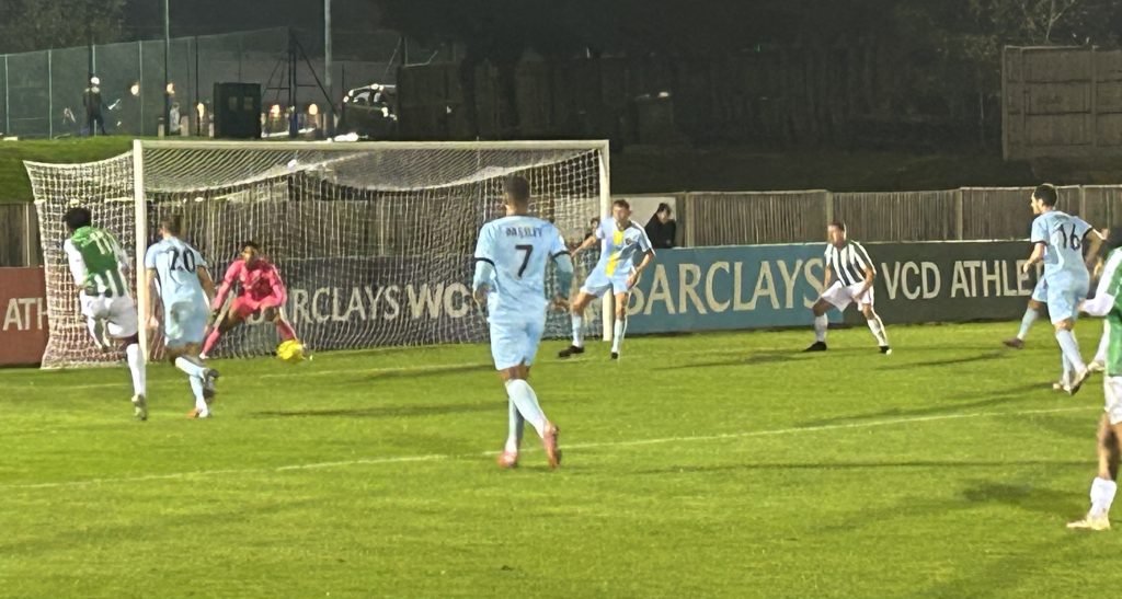 Three minutes later, Ebbsfleet scored a second when Coley finished from George Moncur’s low cross. Although VCD responded immediately when Alfie Evans hit the post and it came out to Ayai who fired home via the same upright, only twenty seconds remained and it was the Fleet who progressed.