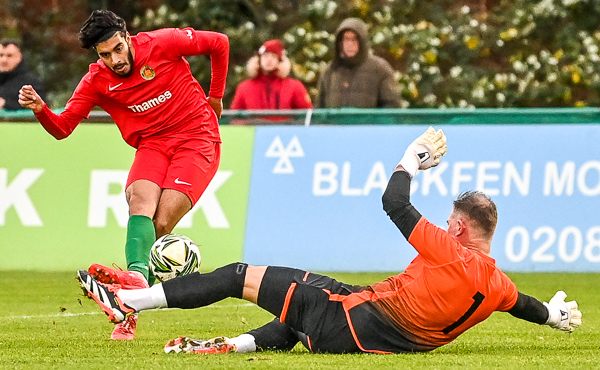 Nathaniel Olawole cut in for the Vickers but fired well over before Malachi Morris was brought down in what must have been a matter of inches outside the penalty area. Morris took the free kick himself and it cleared the wall and beat Giordano Zabotti only to come back out off the crossbar.