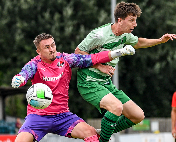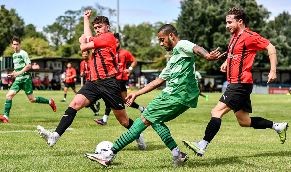 Chander Kasai had a great opportunity early on when sent clear but it didn’t roll kindly on the lush surface and he /was unable to get his shot away. At the other end Jamie Di Giuseppe slung in a left footed free kick which Ben Senior met at the near post,, having lost his marker but he couldn’t direct it goalwards.