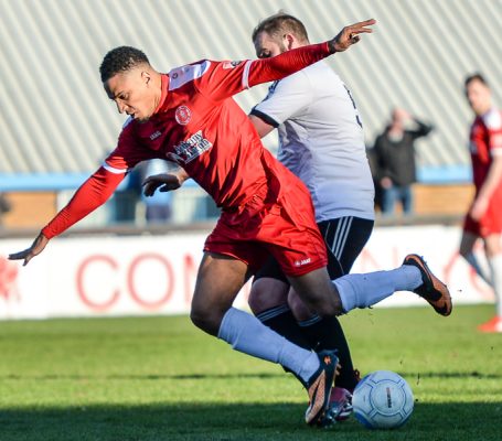 Rhys Murrell-Williamson got the better of Rhys Tyler but his volley flew over then Alex Cathline headed wide from a good Fish cross as Welling started to come into the game.