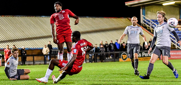 Lee Togwell’s deep cross flew just over the bar, although McKenzie-Kyle appeared to have it covered before Arnold Matshazi shot over after George Hunt pulled it back.