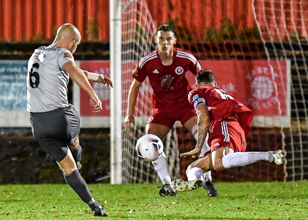 Once more Kasim was in the thick of the action when his deep cross was headed wide by Manny Parry then Maloney’s shot from twenty yards was hit straight at Forster.