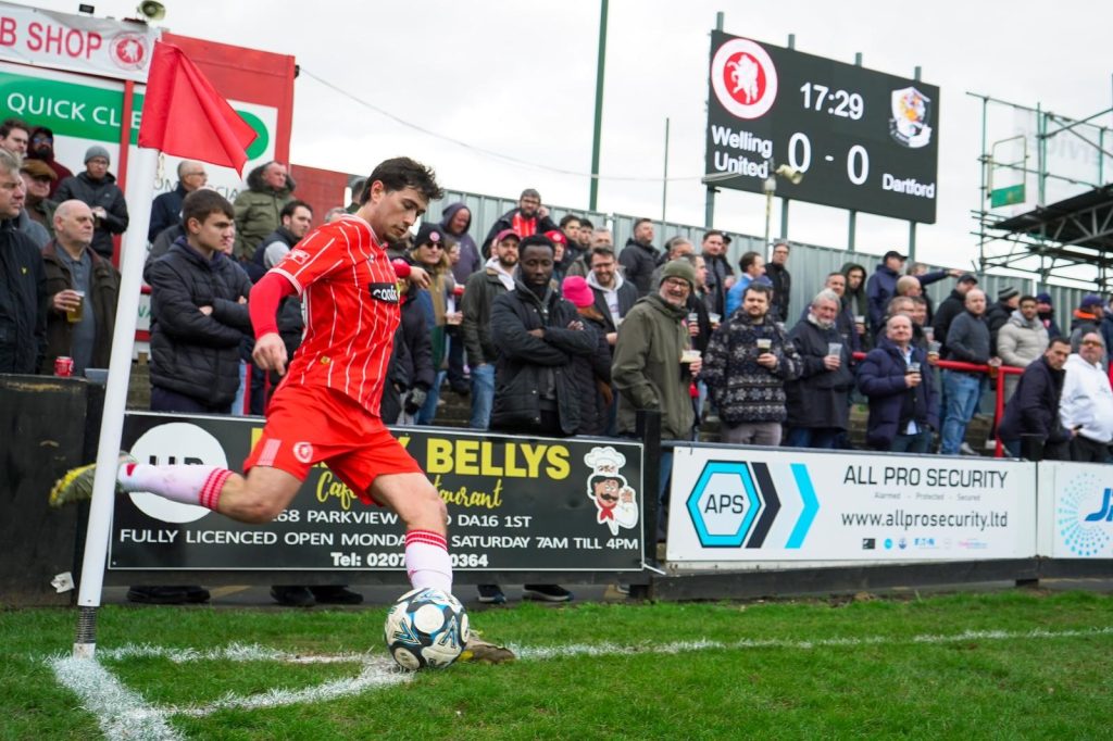 Although Dartford had more of the possession, Welling still had opportunities and Howard met John Ufuah’s cross with a header that went wide of the near post.