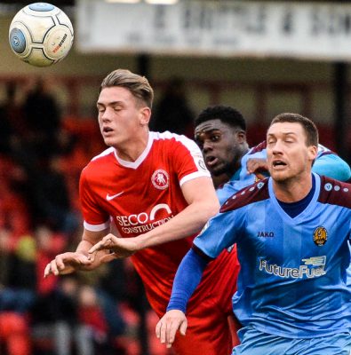 Healy headed wide from Goldberg’s corner then he was also thwarted by a brave block by Ekpiteta when he looked like he was going to level.