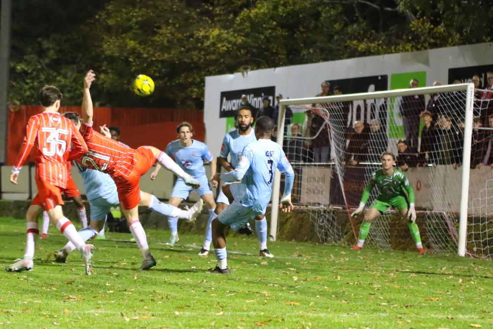 Then, the complexion of the game changed in the seventeenth minute when Folkestone won their first corner. Mikey Berry delivered deep and an unmarked Dean Rance headed home.