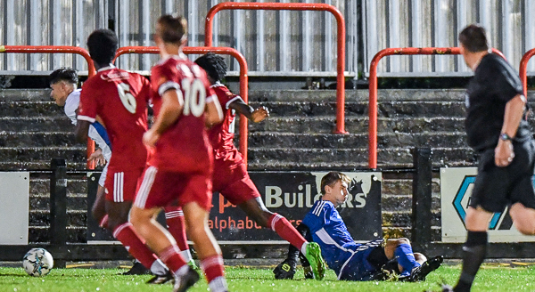 Three minutes remained when Ollie Godziemski was sent clear but Charlesworth came out bravely to make the save and took an inadvertent kick in the head. After a lengthy injury break, he had to be helped off, apparently with concussion. Outfield substitute Daddi Harland-Goddard came on and Fulco donned the number one shirt.