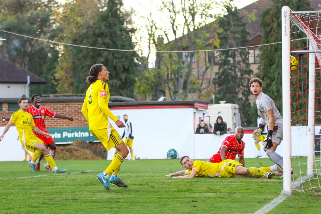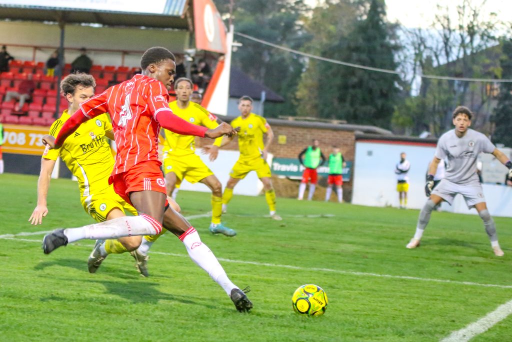 Moments later, Burgess Hill went ahead. A sloppy Welling pass in midfield allowed Stefan Vukoje to break down the wing and cross low towards the near post. Martyn Box got their first and poked it home.