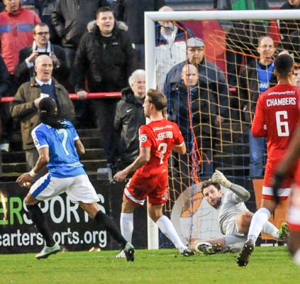 Having made a comfortable early save from Jack Parkinson, he had to be out quickly to block Stefan Payne.