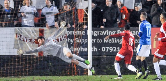Dover manager Chris Kinnear was not just happy with the result. “I was delighted with the way we played, really. We could have ended up with six, couldn’t we. That’s two games on the trot the opposing side’s keeper’s won man of the match.”