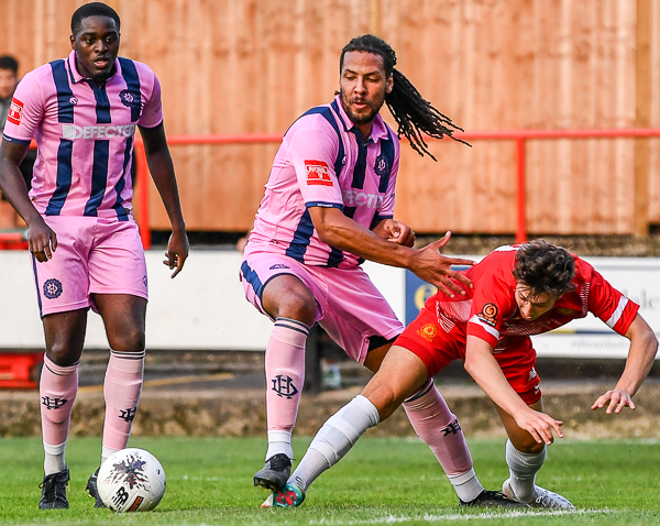 Antony Papadopoulos curled just wide with the keeper well beaten, then Sadik Balarabe drew the Dulwich custodian out and rounded him but rolled it just beyond the far post from a tight angle.