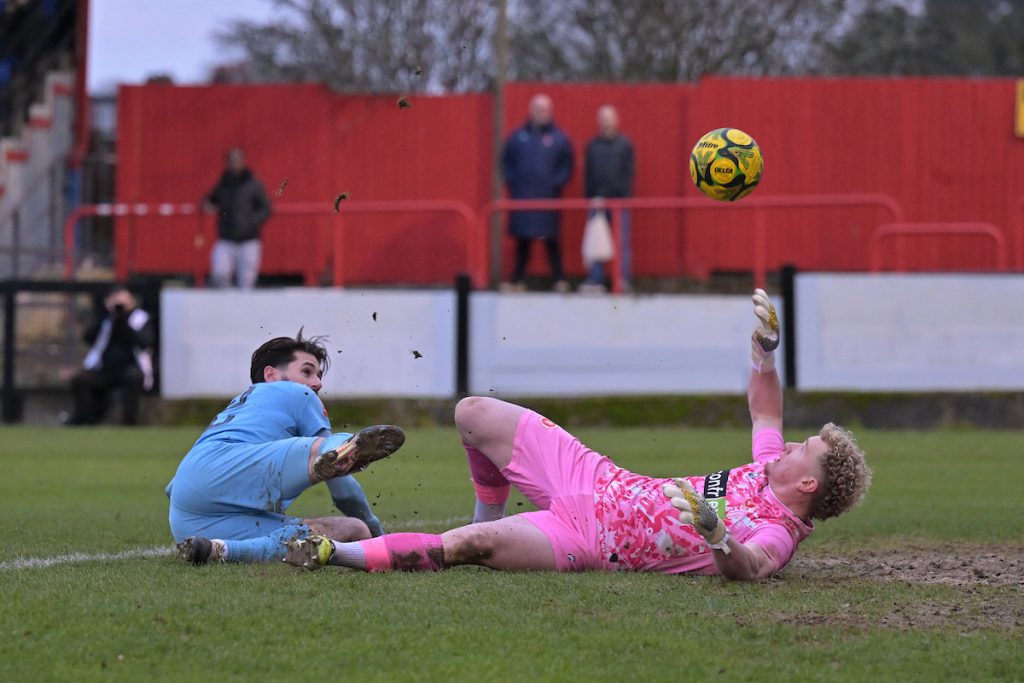 Dylan Pepe was then fouled as he tried to clear but the referee and his assistant ignored it and awarded a throw to Brentwood. The visiting team took full advantage when it found its way to Hughes whose shot appeared to take an unnatural kick off the surface to lift it over a grounded Browne and into the net.