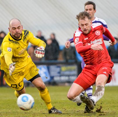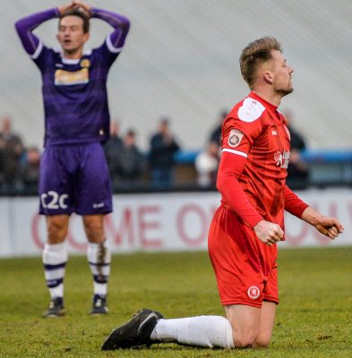 Then the Wings management made a change to the tactics that paid immediate dividends. They switched Crawford and Walker and the latter set up the opening goal. His low near post cross found Coombes at the near post and although Welling’s leading scorer’s point blank effort was kept out by Lidakevicius he was on hand to bundle home his 33rd goal of the season.