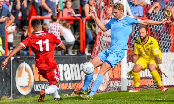 Evergreen Sam Higgins then saw his free kick deflected over by the defensive wall before Roman Michael-Percil was sent away but Dan Wilks was out quickly to make an excellent block.