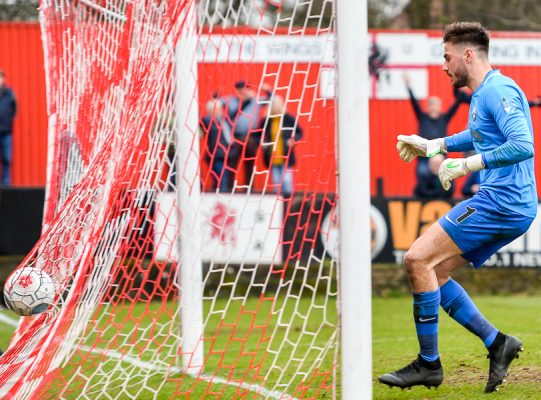 Jack Barham then had a shot deflected wide after Danny Mills had headed a long free kick back across goal before Mills registered Welling’s first effort on target with a header that brought a breath-taking save out of Shaun MacDonald. Orlu, following up, was unable to find the target from an unfavourable angle.