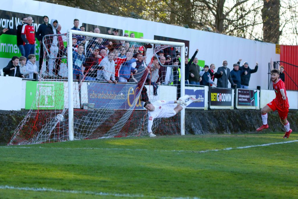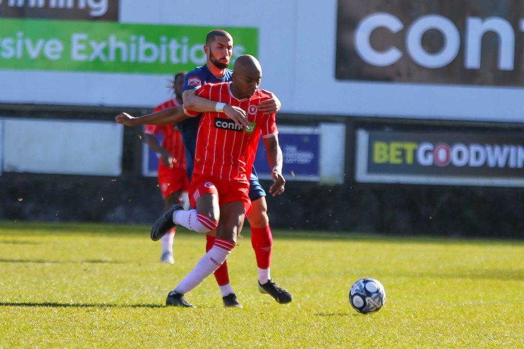 Some spectators were still taking up their vantage points when the drama started. John Ufuah got in front of Taufee Skandari and the visitors’ full back brought him down. After referee Scott Crowhurst cautioned Skandari, Lewis Gard drove the free kick towards the far post and Lekan Majoyegbe headed home for his second goal in two games.