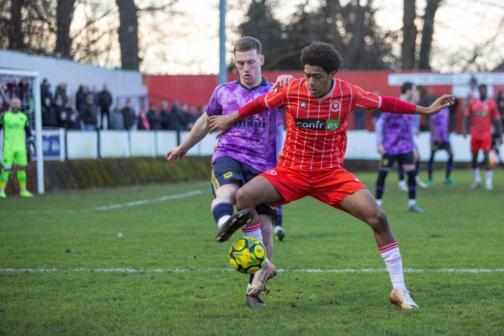In that match, there was little between the two teams for the initial half an hour but then, with ten first half minutes remaining, Folkestone converted from their first real chance. Donell Thomas arrived late and scored a trademark goal with a strike that gave Mackenzie Foley no chance. Then in the second half, just as the Wings were starting to look like they could get back into the game, Liam Smith scored the goal that snuffed out their challenge.