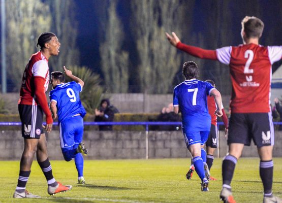 In the early stages, the young full time team looked dangerous. Dan Wilks made a good save from Theo Archibald and Joe Hardy’s shot was deflected.